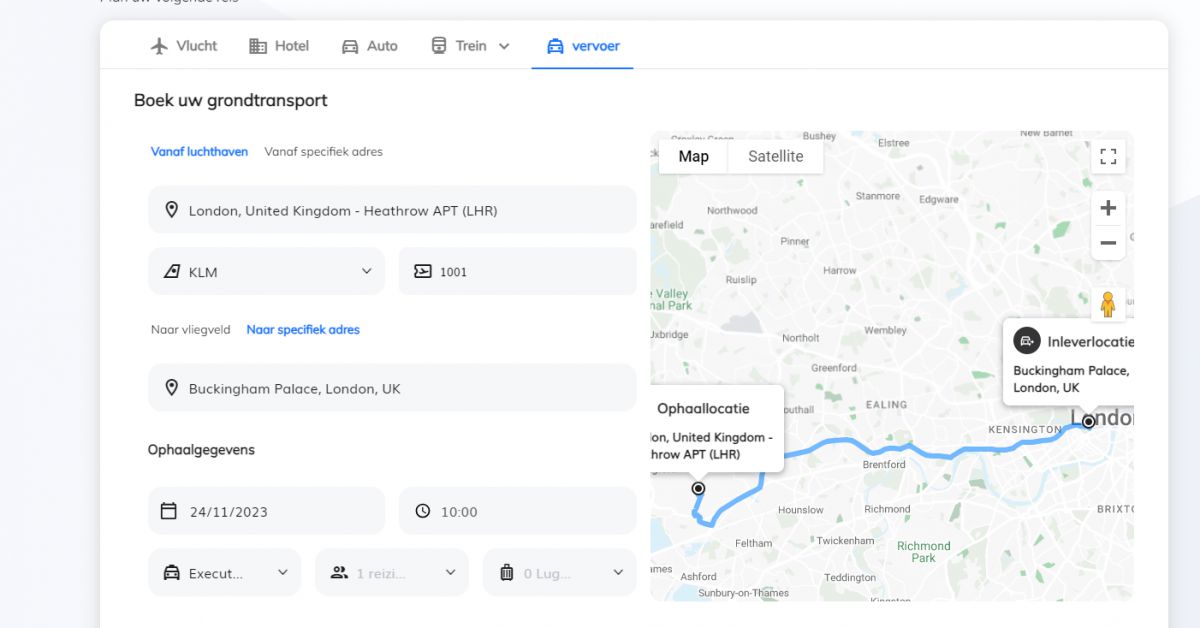 Er zijn verschillende diensten mogelijk: een gedeelde taxi, luxe auto’s, personenbusjes, de keuze is aan jou. In UBI is een ‘vervoer icoontje’ zichtbaar waardoor je dit product eenvoudig kunt toevoegen aan je reis.