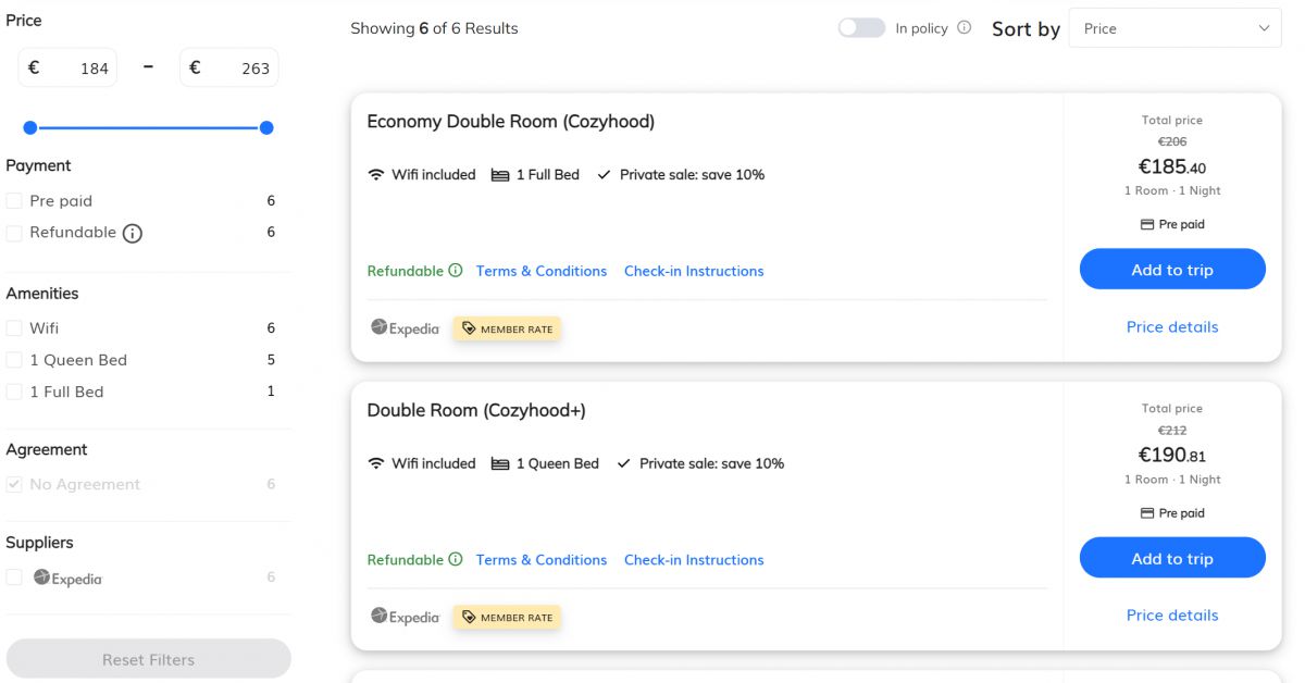 Wellicht is het je al opgevallen dat er sinds kort Expedia Memberdeals beschikbaar zijn in UBI. Deze tarieven bieden jou als zakenreiziger extra voordeel omdat naast een scherp tarief ook de voorwaarden extra flexibel zijn. Zo zijn extra's tijdens je verblijf vaak inbegrepen en kun je indien nodig, makkelijk je reis aanpassen of kostenloos annuleren. Je herkent de tarieven aan het label "member rate" in de boekingsdialoog.